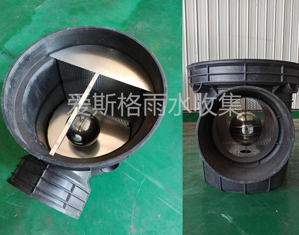 产品内置不锈钢挡板、控制弹簧、关闭控制球,挡板可以感应过来的雨水流量,当达到设定的降雨流量时,排污口自动关闭,停止排污,进行雨水收集。